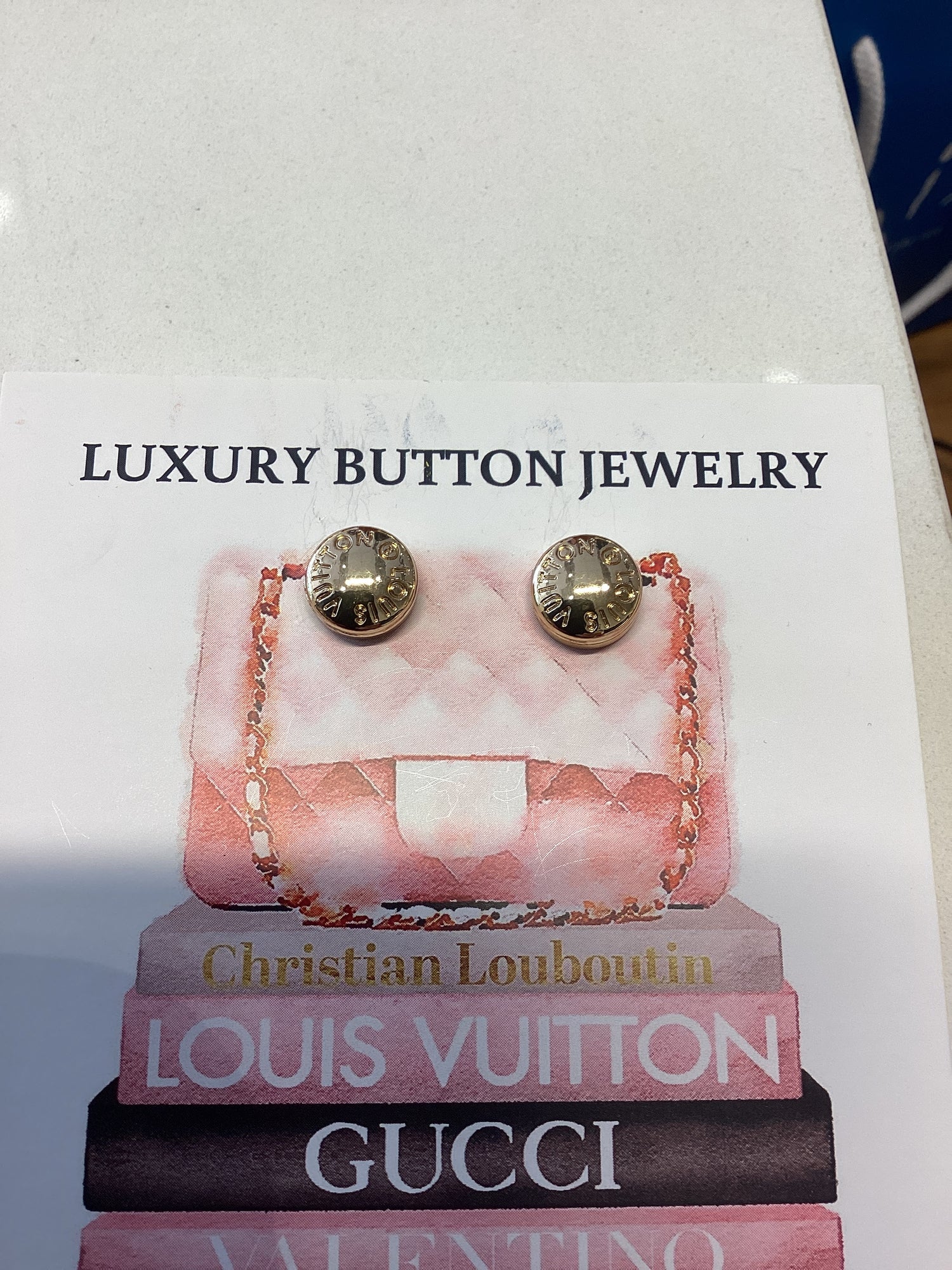 All of our luxury jewelry is made with authentic buttons/fabric handmade by Nan. We are not affiliated with any luxury brands or their subsidies.