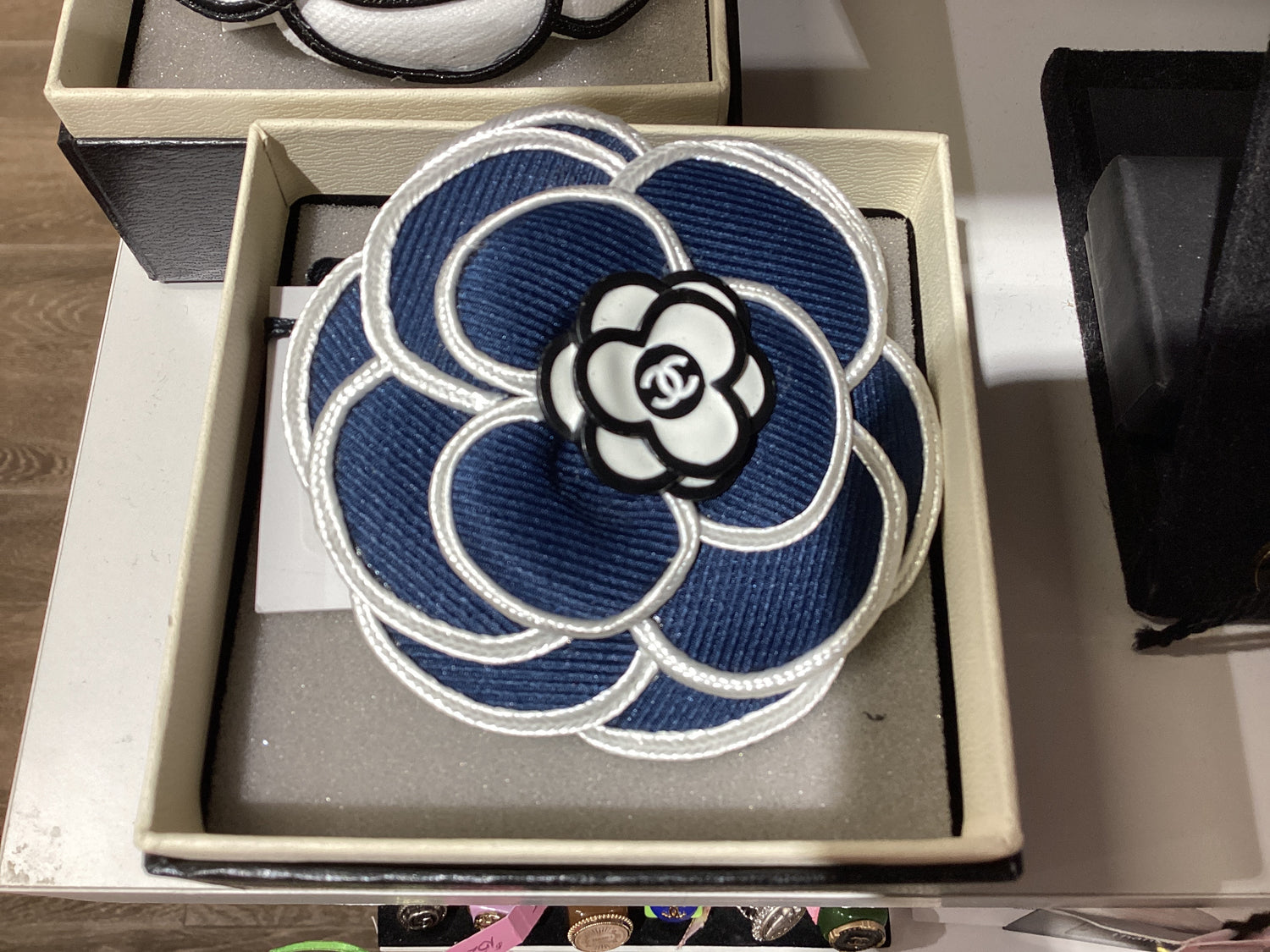 All of our luxury jewelry is made with authentic buttons/fabric handmade by Nan. We are not affiliated with any luxury brands or their subsidies.