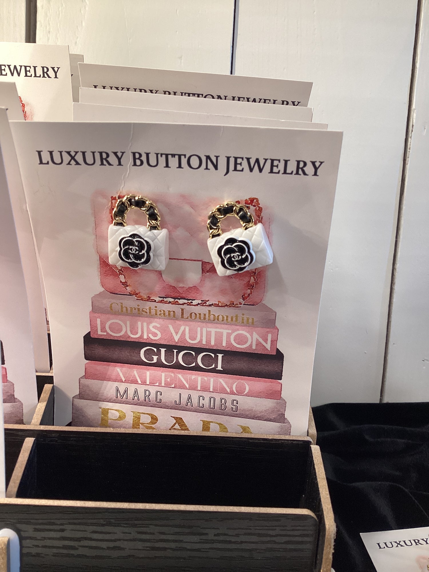 All of our luxury jewelry is made with authentic buttons/fabric handmade by Nan. We are not affiliated with any luxury brands or their subsidies.
