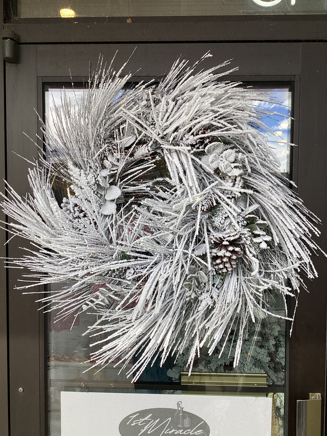 WR980 FLOCKED PINE WREATH is backordered and will ship as soon as it is back in stock.